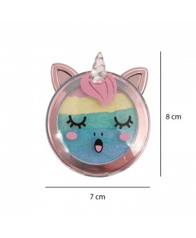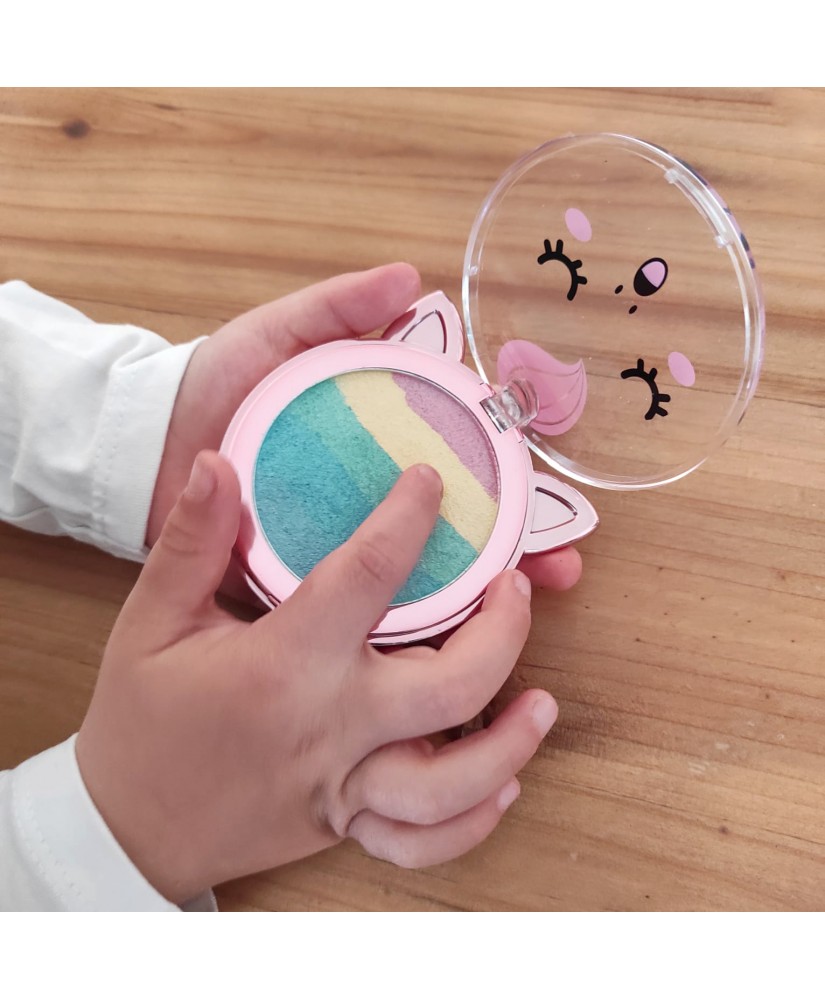 Imagina abrir un estuche con tapa transparente con una carita de unicornio sonriente. ¡Es toda una experiencia mágica! Pero la magia no termina ahí, en su interior encontrarás cinco colores vibrantes de sombras de ojos diseñadas especialmente para los niños.