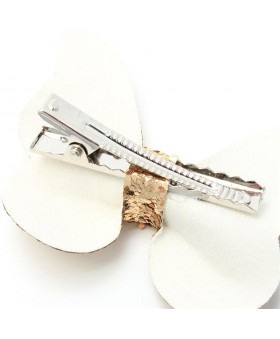 La pinza cocodrilo mide 4,5 cm y va decorada con un adorno de mariposa de 6 cm, mientras que los clips tienen una medida de 5,5 cm, proporcionando una sujeción cómoda y segura.