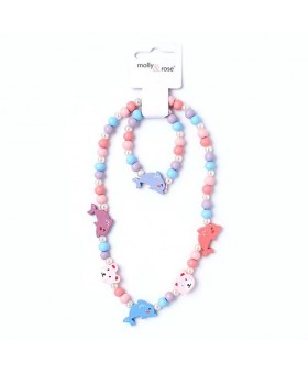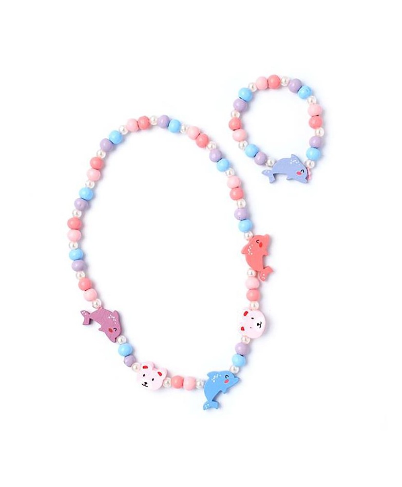 COSMÉTICA INFANTILSet Infantil de Collar y Pulsera de Madera y Plástico - Figuras de Delfines y Osos