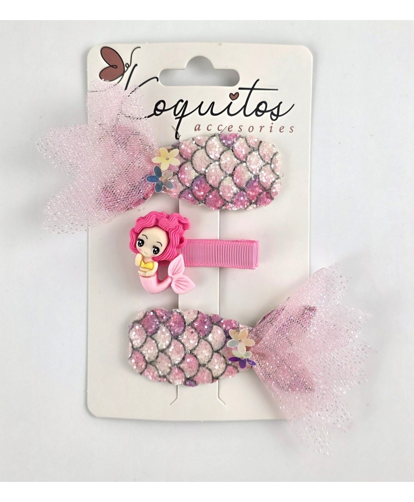 COSMÉTICA INFANTILSet de tres pinzas para el pelo Sirenita