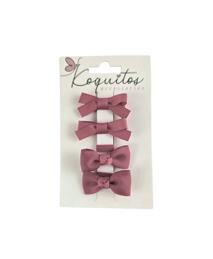 COSMÉTICA INFANTILSet de 2 pinzas y 2 gomas con lazos Rosa