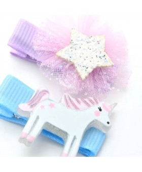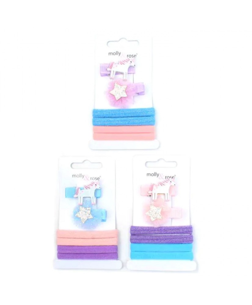 Pack de 2 pinzas con adornos unicornio y 4 coleteros