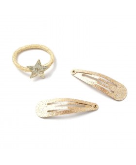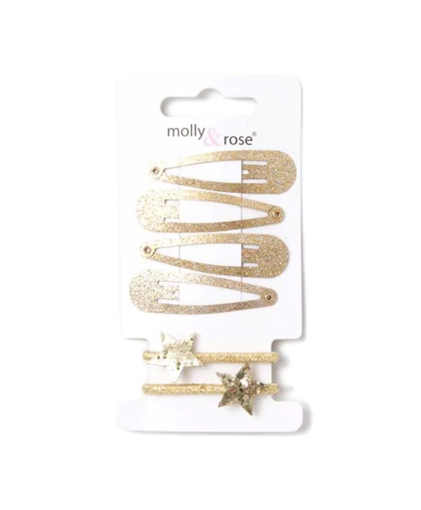 Set de 4 clips y 2 gomas con estrella dorados